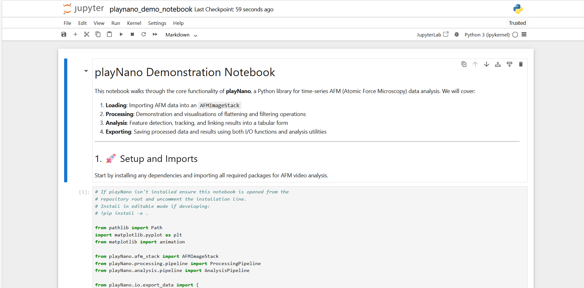 Within the notebooks/ directory, you will find as series of [Jupyter Notebooks](https://www.jupyter.org) that demonstrate how to use playNano programmatically in an interactive environment. These notebooks cover the entire workflow from loading and processing data to analysis and export.
